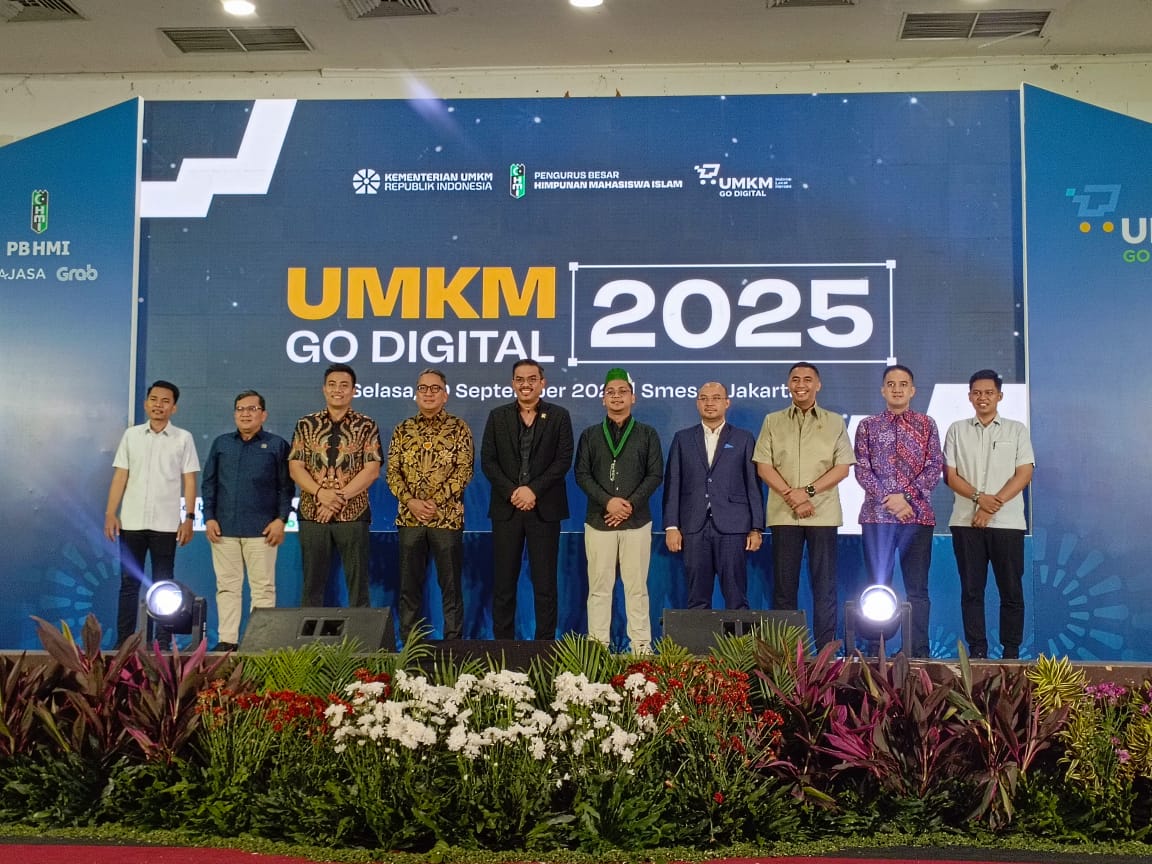 Porosnusantara.co.id | Jakarta — Upaya memperkuat daya saing pelaku usaha mikro, kecil, dan menengah (UMKM) terus digalakkan. Selasa (30/9/2025), PB Himpunan Mahasiswa Islam (HMI) menggandeng sejumlah mitra strategis—termasuk Patra Jasa, Bank BRI, dan Grab—dalam acara bertajuk “UMKM Go Digital 2025” yang digelar di Smesco Indonesia, Jakarta.