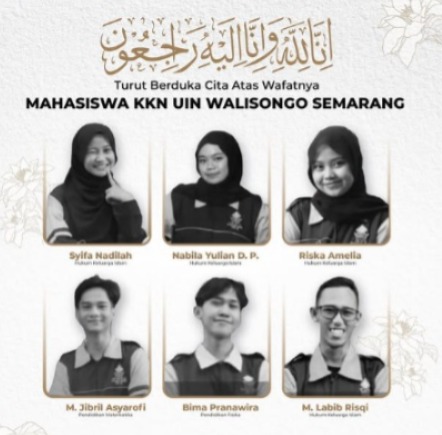 “Keluarga besar UIN Walisongo Semarang berduka atas musibah yang menimpa enam mahasiswa peserta KKN di Desa Getas, Kecamatan Singorojo, Kabupaten Kendal. Kami menyampaikan belasungkawa sedalam-dalamnya kepada keluarga korban dan memanjatkan doa terbaik untuk mereka,” ujarnya dalam keterangan resmi, Kamis (6/11/2025).