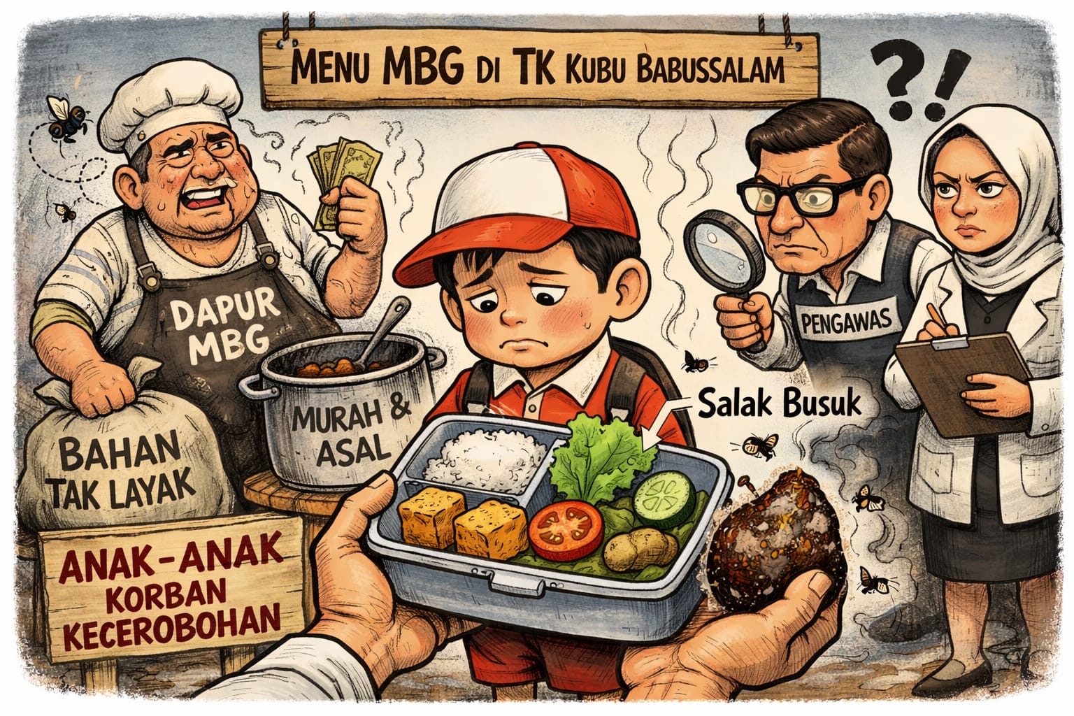 Publik mendesak pengawas MBG, dinas terkait, serta ahli gizi untuk segera turun ke lapangan dan mengaudit dapur MBG di Kubu Babussalam, mulai dari bahan baku, proses memasak, hingga distribusi makanan ke sekolah.